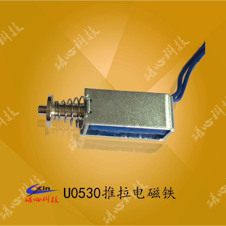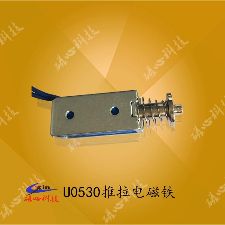 U0530 框架電磁鐵是磁心科技大批量生產的一款微型推拉式電磁鐵,框架電磁鐵U0530可以做成推式電磁鐵和拉式電磁鐵,產品具有體積小、安裝方便、成本低被市場廣泛用于自動化設備、自動玩具、信報箱和儲物柜等