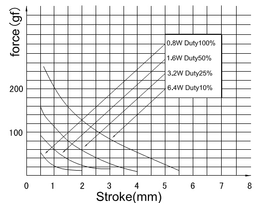 U0415推拉電磁鐵行程和力量的曲線圖: