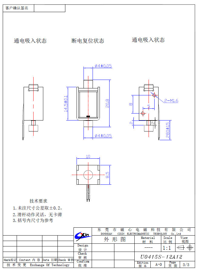 U0415推拉電磁鐵參數(shù):