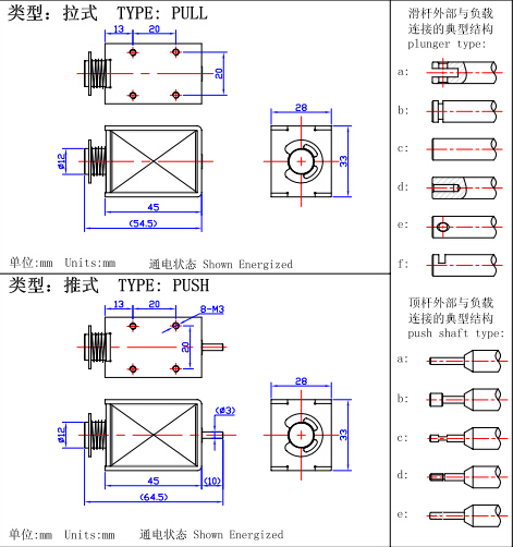 一,U1253推拉式電磁鐵的尺寸圖: