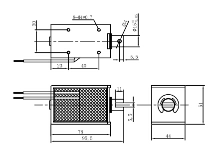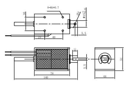 一:U1578大行程電磁鐵尺寸圖: