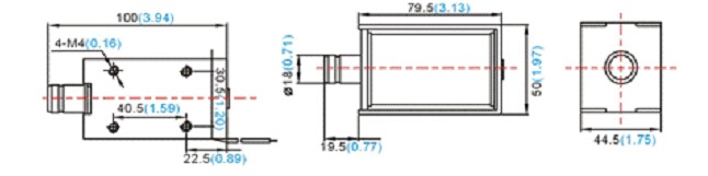 電磁鐵的側面各有4個M4的螺紋孔
